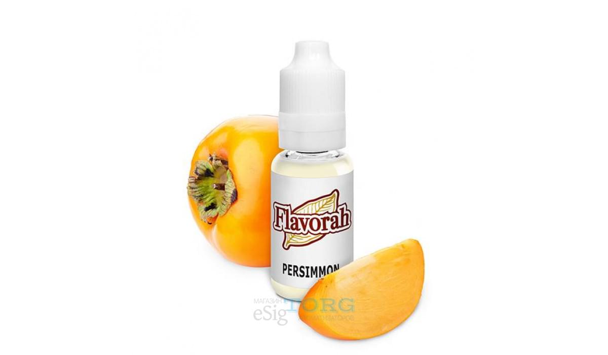 Persimmon FLV — вкус и аромат спелой хурмы. Это интересная, в меру терпкая и достаточно сладкая арома, которая натуралистично передает вкусоароматические свойства хурмы. Вкус отдаленно напоминает персик и сливу с землистыми нотами. Заметный тротхит. Рекомендуемые пропорции для Persimmon Flavorah: 1-3% (соло) и от 0,2 до 1% (в рецептах).